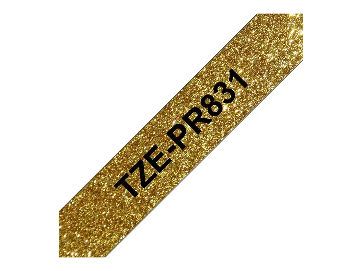 TZe-PR831 - Schwarzer Druck auf Premium Glitter Gold - Rolle (1,2 cm x 8 m) 1 Kassette(n) laminiertes Band - für Brother PT-H110, H200; P-Touch GL-H105, PT-D210, D400, D600, D800, E550, H110, H200, P900