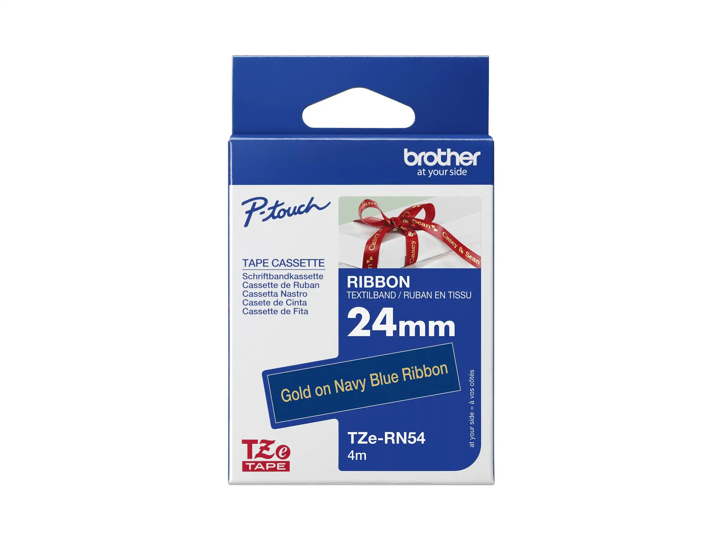 TZe-Rn54 - Seidig - Gold auf Marineblau - Rolle (2,4 cm x 4 m) 1 Kassette(n) Band - für Brother PT-D600; P-Touch PT-3600, D600, D800, E550, P750, P900, P950; P-Touch EDGE PT-P750