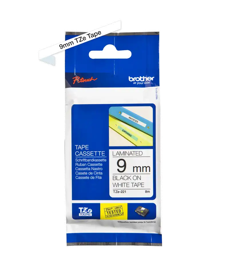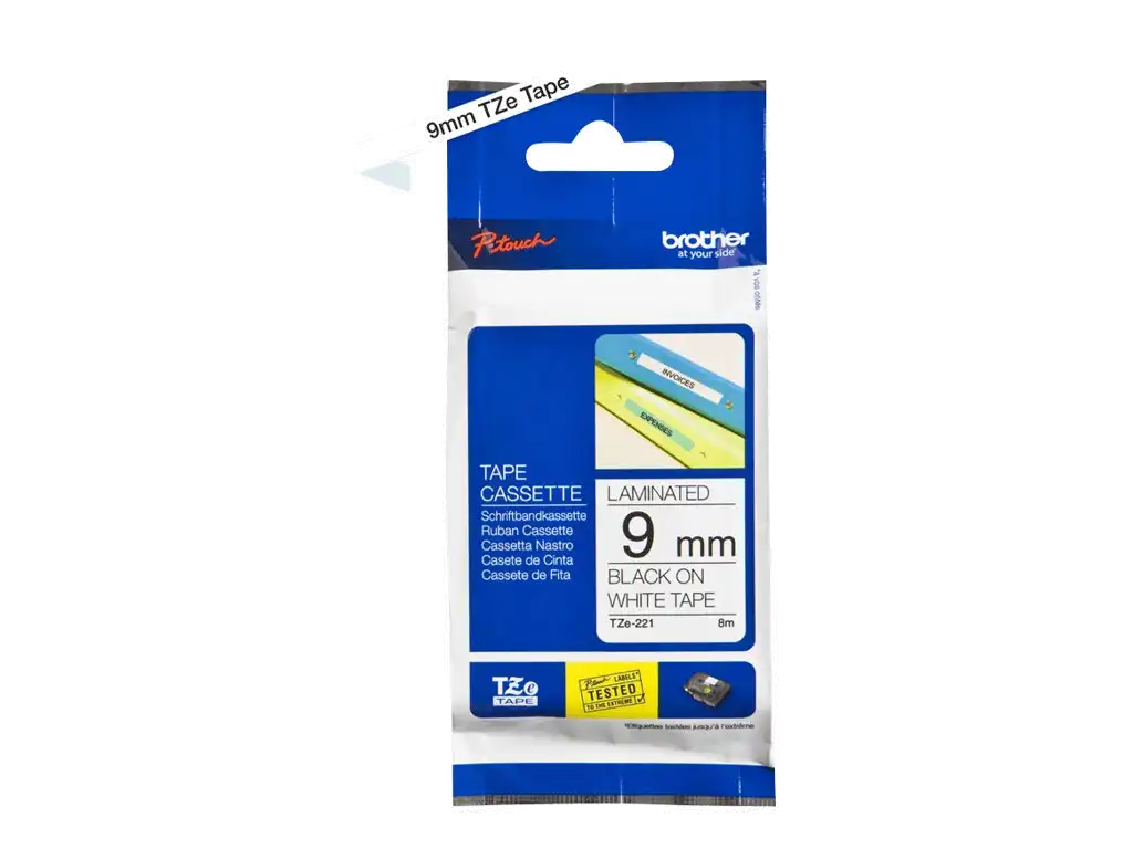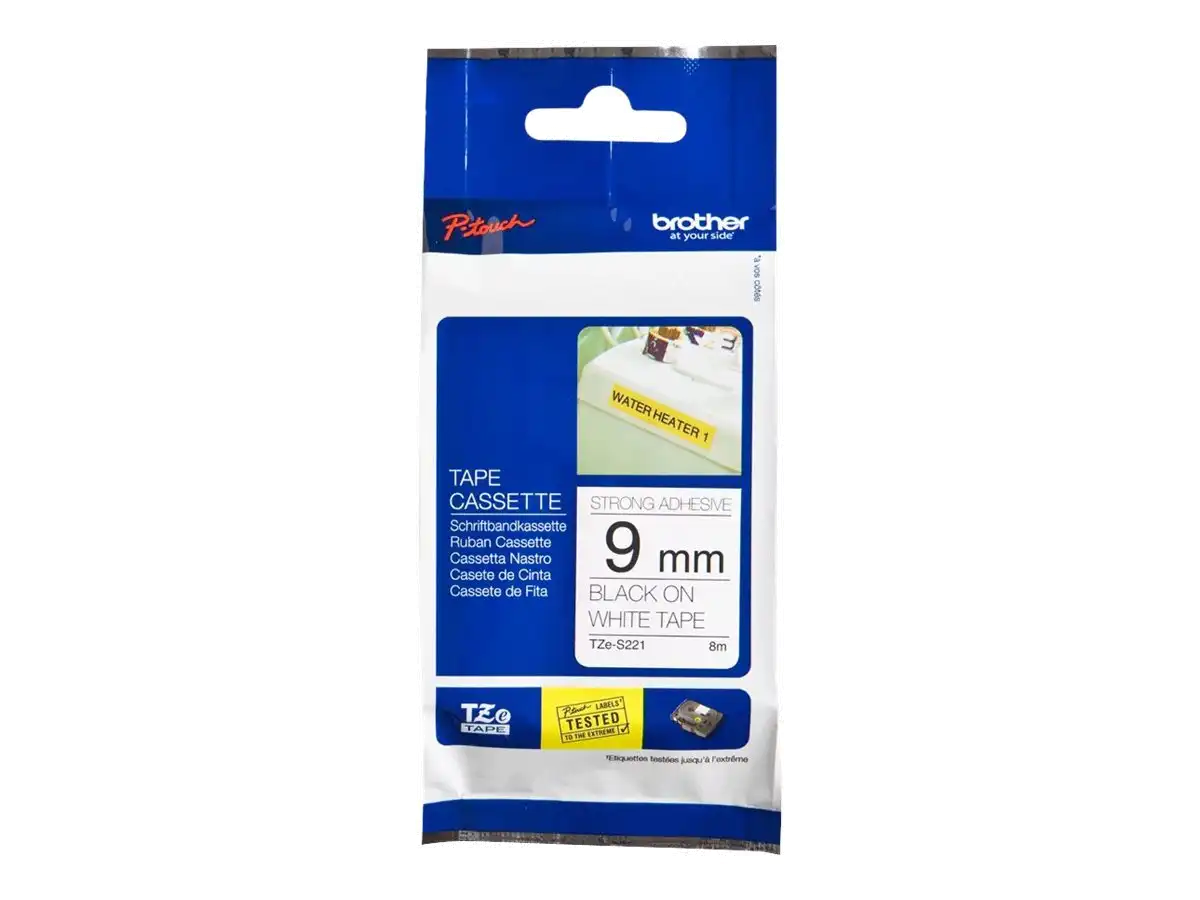 TZe-221 - Selbstklebend - Schwarz auf Weiß - Rolle (0,9 cm x 8 m) 1 Kassette(n) laminiertes Band - für Brother PT-D210, D600, H110, P750, P950; P-Touch PT-E550; P-Touch Cube PT-P300, P910